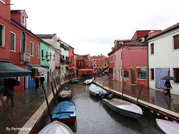 我們從穆拉諾搭船往布拉諾的時候,雨下的窗外只看的到瀑布,這張照片是我回程的時候拍的~從穆拉諾往布拉諾的途中,會經過許許多多的小島,小島幾乎周圍都用紅磚整個圍起來,形成一個個的水上堡壘,至於沒有圍起來、防洪措施不夠扎實的,在海水的摧殘下、只剩下些許的斷垣殘厓掙扎的浮出海面。