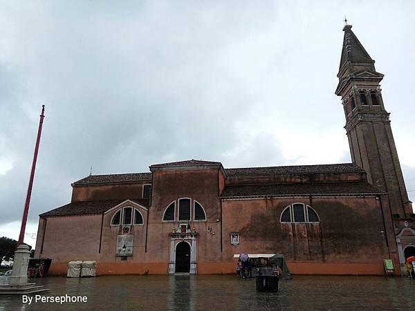 接著我們回到巴大薩雷加露比廣場,廣場旁最醒目的建築就是聖馬丁教堂(Chiesa di San Martino), 建於16世紀的聖馬丁教堂是布拉諾的信仰中心,教堂的特色是歪斜的鐘樓,根據布拉諾官方網站的介紹,鐘樓由於地層下陷的關係, 相對於其軸心傾斜了1.83公尺,好斜阿!