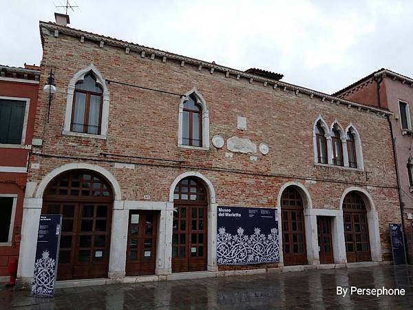 教堂的對面就是蕾絲博物館(Museo del Merletto di Burano),1872年伯爵夫人在島上建立一家蕾絲學校,關於布拉諾的蕾絲有個美麗的傳說,據說一位青年隨十字軍東征前,送給愛人一塊海藻,女孩擔心這件信物會變質,於是用獨特的方法把海藻織入漁網,以便長期保存,這種鏤空的針織法後來演變成布拉諾的蕾絲,然而,傳說止不住古老手工的漸漸式微,蕾絲學校最後終因招不到新生,只好改建成博物館,所以布拉諾也稱為蕾絲島。